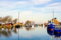 Rustige idyllische sportbotenhaven, in het warme zonlicht, in Orth op Fehmarn.