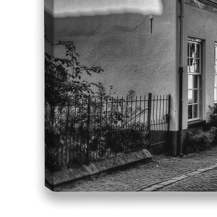 Koop de foto Havik en Krommestraat historisch Amersfoort zwartwit van Watze D. de Haan op canvas, aluminium dibond, (ingelijste) fotoprint, behang en ArtFrame, op maat geprint in Fine-Art kwaliteit.