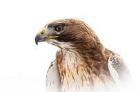 De achtergrond heb ik egaal wit gehouden, zodat de markante kop van de vogel extra aandacht krijgt.