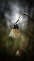 Hangend pluimzaad van havikskruid, op een wazige achtergrond