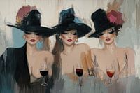'Having fun with the girls", een superleuk portret van drie dames die een glaasje wijn drinken. Een vrolijke blikvanger voor je interieur!