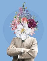 Het zomerse en ietwat onwaarschijnlijk portret van een goed geklede man.
