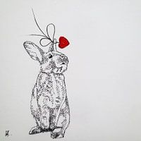 Dieren zijn er om van te houden. Met de toevoeging van het hartje wil ik dit nog eens extra aandacht geven. Het origineel is 8x8cm. Gemaakt met fineliner en inkt. Nu ook beschikbaar op groter formaat bij werkaandemuur