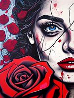"Heartbroken" is een krachtig kunstwerk dat een diepgaande emotionele reis verkent. Het portret van de vrouw onthult de complexiteit van menselijke emoties, waarbij de helft van haar gezicht een zichtbare kwetsbaarheid toont. Links van haar hoofd prijkt een rode roos als symbool van liefde, passie en tegelijkertijd als contrast met de…