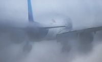 Hevige storm met veel regen en vocht, condense op de vleugels. Geeft een gaaf effect aangezien het een spoor achterlaat op de vleugels