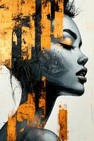 Dit indrukwekkende kunstwerk combineert de esthetiek van een modern portret met de dynamische textuur van abstracte schilderkunst. Opvallend is het bladgoud over het gezicht en de achtergrond. Deze gouden accenten breken het monochrome kleurenpalet en geven het kunstwerk een luxe en toch moderne uitstraling. Het gestructureerde…