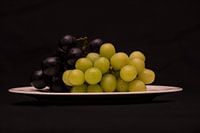 Fruit is niet alleen gezond, maar ook mooi! Een bord met frisse witte en blauwe druiven is een stilleven. Mooi in ieder interieur, modern, romantisch of landelijk.