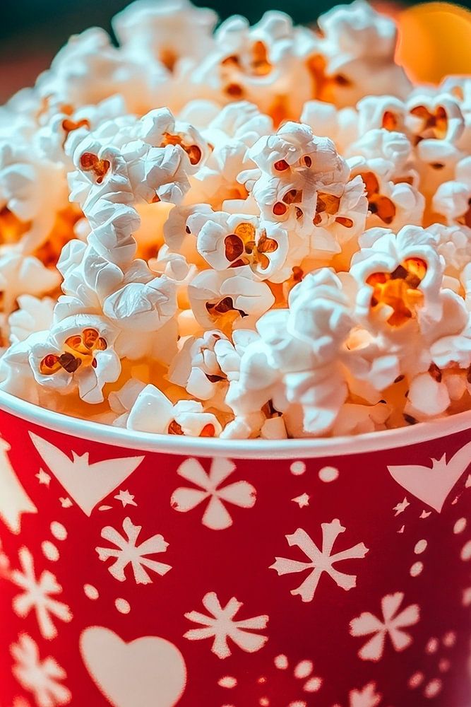 Een kleurrijke popcornbak gevuld met pluizige, goudbruin geroosterde snacks schittert te midden van feestelijke lichtjes. De hartige patronen op de mok voegen een vleugje nostalgie en gezelligheid toe. Ideaal voor in de keuken of woonkamer, waar het plezier en de voorpret van bioscoopavonden tot leven komen. Een voorgerecht voor…
