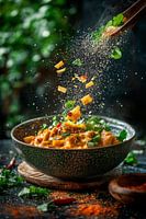 Een bruisend smakenfestijn ontvouwt zich in een harmonieuze mix van verse kruiden, knapperige ingrediënten en een snufje specerijen die als smaakvol vuurwerk door de lucht dansen. Dit culinaire kunstwerk komt perfect tot zijn recht in de keuken en nodigt uit tot momenten van genot.