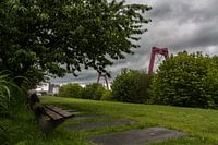 Een beeld tussen de buien door vanuit het park achter de Willemsbrug - het Hefpark. Achteraan is het Witte Huis te zien, wat ooit het hoogste gebouw van Europa was.