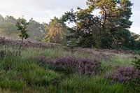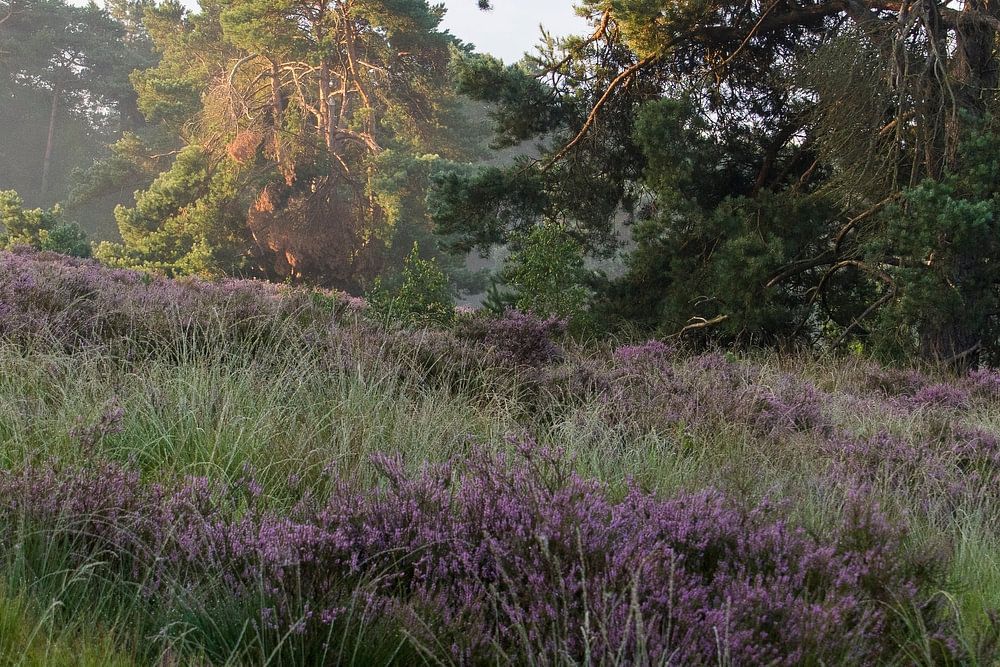 In het bos van de Woensdrechte hei is veel te zien. Ook veel spinnenwebben in de ochtend.