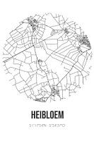 Zwart-witte landkaart, stratenplan of plattegrond van Heibloem. Heibloem is gelegen in de gemeente Leudal, provincie Limburg. Op de stadskaart zijn alle openbare wegen in Heibloem opgenomen. Verder is de kaart voorzien van de coördinaten van het centrum van Heibloem.