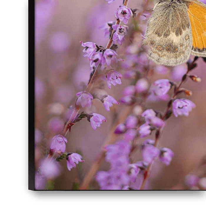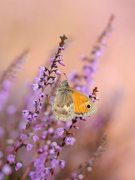 Maak kennis met het Hooibeestje, een prachtvlindertje in oranje gehuld. Je vindt deze vlinders op de heide. Dit is zo'n lekker zacht harig vlindertje, klein en megahyper. Maar hier nog net drogend in de ochtendzon. Vandaar ook het prachtige licht.