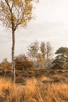Heide/ gras landschap met berken bomen in zacht ochtend licht. Gefotografeerd met weinig scherptediepte, zodat een zachte, wazige voorgrond en achtergrond is ontstaan. Het is een sfeervol beeld met warme kleuren. De foto is gemaakt bij Treekerpunt / Den Treek in Nederland in de herfst. Zie ook mijn andere foto's die ik op deze plek heb gemaakt; wellicht is er een mooie combinatie