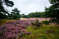 Een maal per jaar staat de heide in bloei. Uitbundig en overweldigend in vele paarstinten. Heide maakt in grootte delen van Europa deel uit van het oer-landschap. Deze foto kan net zo gemakkelijk in Nederland als in Duitsland of Frankrijk gemaakt zijn. Het is de enorme overvloed aan lila paars die velen aantrekt. in combinatie met het groen van de bomen een waar sieraad aan de muur.