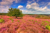 Heide in bloei op de Posbank ( Herikhuizerveld ) en een prachtige wolkenlucht