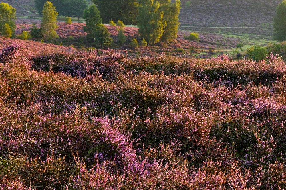 De heide staat in bloei op de Posbank