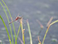 Hier zie je de bloedrode heide libelle op een rietstengel.