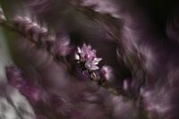 Slechts een paar bloemetjes van de paarse struikheide zijn scherp, door het gebruik van de Helios Petzvallens. Dit is een analoge vintage lens en door het gebruik van deze lens ontstaat er veel mooie swirly bokeh.