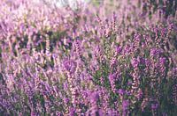 Close-up van de bloeiende heide. Paarse foto met zachte tinten.