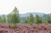 Heidelandschap met ochtendmist, Heiedebloesem, Niederhaverbeck, Lüneburger Heide-natuurpark, Nedersa van Torsten Krüger