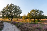 Bij Roermond in Nederland ligt een betoverend heidelandschap, Nationaal Park de meinweg. Deze foto is genomen tijdens een late zomeravondwandeling door dit landschap. De heide was al bijna verbleekt, maar er waren nog steeds tere sluiers van kleur in het warme avondlicht.