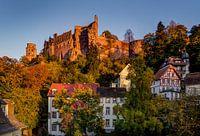 Heidelberg is een Duitse stad in de deelstaat Baden-Württemberg. Het is een toeristische bestemming, vooral vanwege de ruine van het kasteel dat hoog boven de stad torent. Hier zien we het kasteel tijdens het gouden uur, net voor zonsondergang.