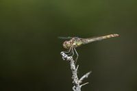 Een helder beeld van een bruinrode heidelibel. De groene egale achtergrond laat de libel van de foto af spatten.