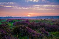 Heideveld vroeg in de ochtend in het Drentse Nationaal Park Dwingelderveld
