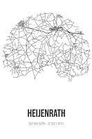 Zwart-witte landkaart, stratenplan of plattegrond van Heijenrath. Heijenrath is gelegen in de gemeente Gulpen-Wittem, provincie Limburg. Op de stadskaart zijn alle openbare wegen in Heijenrath opgenomen. Verder is de kaart voorzien van de coördinaten van het centrum van Heijenrath.