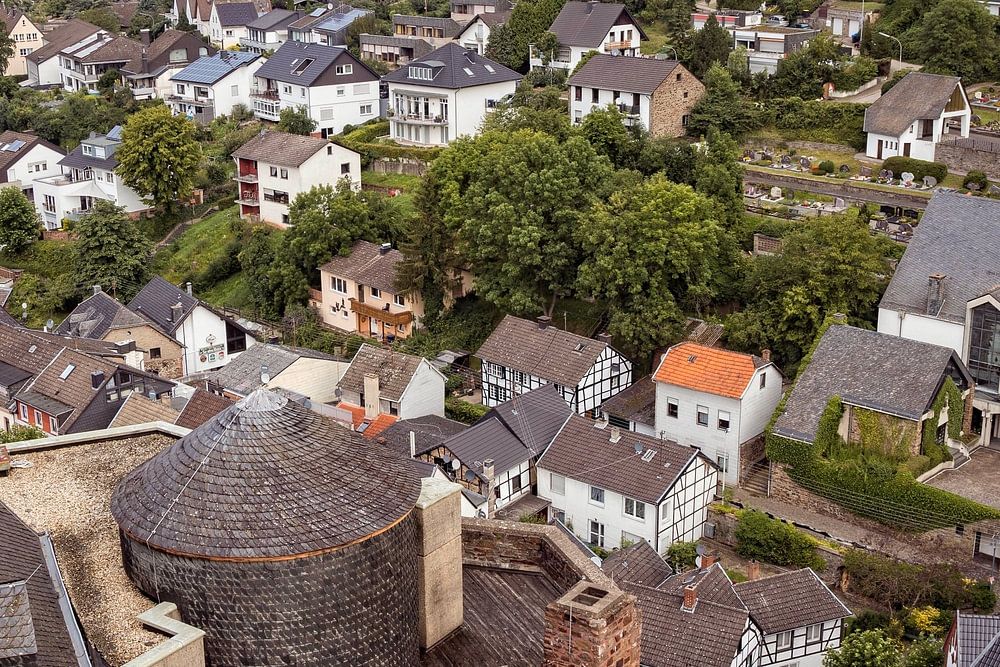 Uitzicht vanaf Burgt Hengebach in de Eifel (Duitsland)