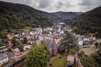 Uitzicht vanaf Burgt Hengebach in de Eifel (Duitsland)