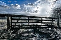 Een HDR tegenlicht opname van een hek in de stralende winterzon in het Drentsche Aa gebied.