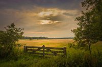 De avondzon valt over het Dwingelderveld. Het nationaal park in Drenthe met veel wandel en fietsroutes.