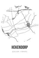 Zwart-witte landkaart, stratenplan of plattegrond van Hekendorp. Hekendorp is gelegen in de gemeente Oudewater, provincie Utrecht. Op de stadskaart zijn alle openbare wegen in Hekendorp opgenomen. Verder is de kaart voorzien van de coördinaten van het centrum van Hekendorp.