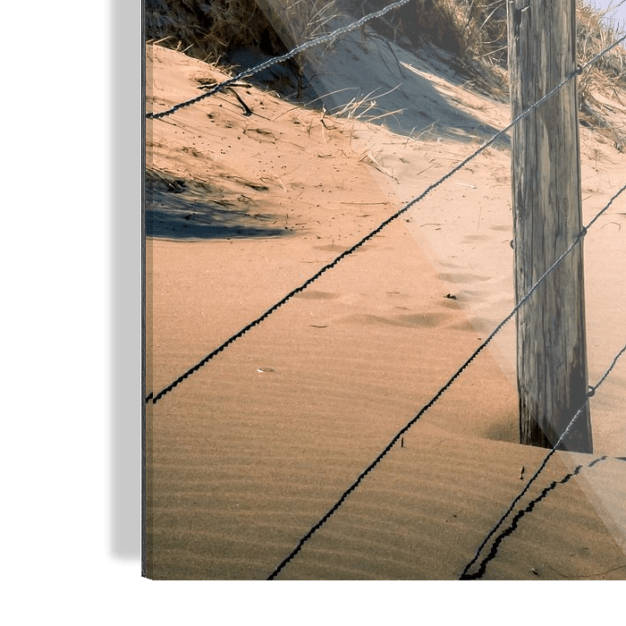 Koop de foto Hekje bij strandopgang met duinen, strand en de zee. van Jeroen op canvas, aluminium dibond, (ingelijste) fotoprint, behang en ArtFrame, op maat geprint in Fine-Art kwaliteit.