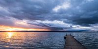 Een steiger aan de Ammersee in een romantische lichtstemming na een storm. Ammersee, Beieren,Duitsland