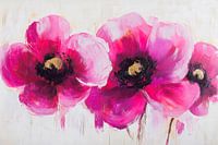 Drie prachtige bloesems in felroze brengen de kamer tot leven en geven elke blik een gevoel van frisheid en elegantie. De stralende kleuren en het levendige penseelwerk maken dit kunstwerk de perfecte keuze voor de woonkamer, waar het uitnodigende accenten legt en de sfeer opfleurt.