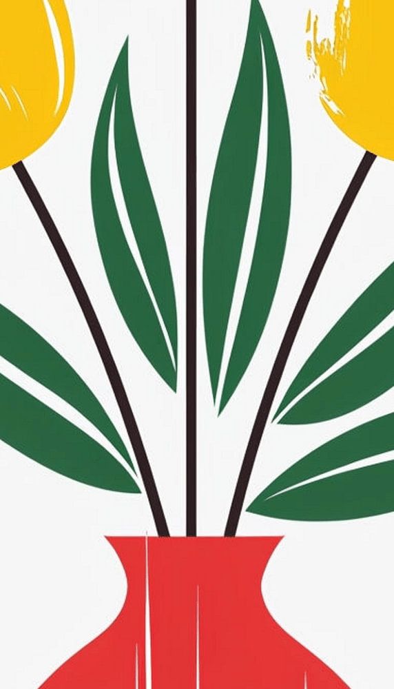 Vrolijk elke kamer op met deze levendige folk art print. Met een boeket van drie schitterende gele tulpen met een unieke, gestructureerde en verweerde afwerking geeft dit stuk een moderne maar tijdloze uitstraling aan je inrichting. De diepgroene bladeren complementeren de heldere bloemen, allemaal gerangschikt in een opvallende rode vaas versierd met een handgetekend ruitpatroon. Perfect voor een keuken, woonkamer of kinderkamer, deze bloemenkunst is een prachtige manier om je ruimte op te fleuren en een vleugje speelse elegantie aan je muren te geven.
