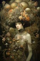 Hele mooie vrouw bedekt met vreemde bloemen