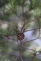 Daar hangt hij dan, helemaal alleen...de dennenappel...
