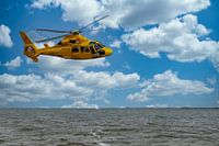 De helikopter van de SAR vliegend boven het IJsselmeer.