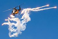 Flares worden afgeschoten van een Agusta A109 helikopter van de Belgische Luchtmacht. Flares zijn magnesiumfakkels die warmte afgeven en zo infrarood geleide raketten proberen te misleiden. Het afvuren hiervan moet echter goed getimed worden, een moderne lucht-luchtraket laat zich niet makkelijk misleiden.