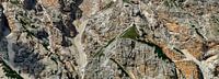 Drie helikopters voor de noordwand van de spitse top (Sasso di Landro) van de Sesto Dolomieten in Zuid-Tirol, Italië