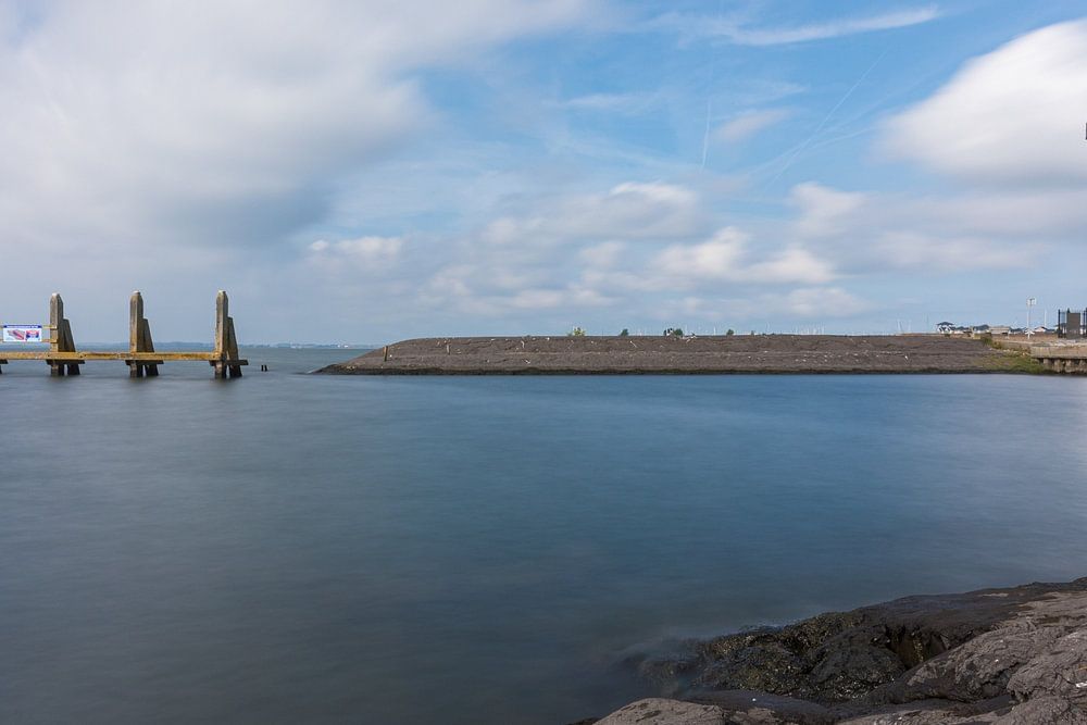 Zicht op de vuurtoren en de haveningang vanaf het haringvliet naar Hellevoetsluis. Door gebruik van een lange sluitertijd ontstaat deze dromerige sfeer.