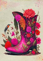 Cowboy laars in mixed media stijl met een knipoog naar de lente:)