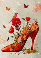Naaldhak pump in mixed media stijl met een knipoog naar de lente:)