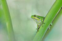 Boomkikker op een dikke grasspriet.