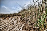 helmgras aan de rand van een zandverstuiving, natuur beheerders houden deze gaten in stand om zo het natuurlijke landschap in stand te houden.