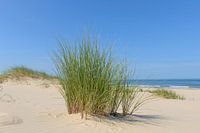 Duinen aan het strand met helmgrass tijdens een mooie zomerdag op het Noordzeestrand in de Schoorlse Duinen in Nederland.